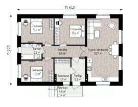 - В доме 3 комнаты и кухня-гостиная, 1 санузел