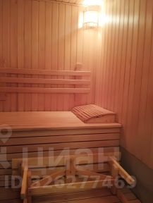 Из кухни выход в банный комплекс, включающий в себя сауну, помывочную и комнату отдыха с кухонным гарнитуром и холодильником. На втором этаже спортивный уголок с тренажерами и спальная комната.