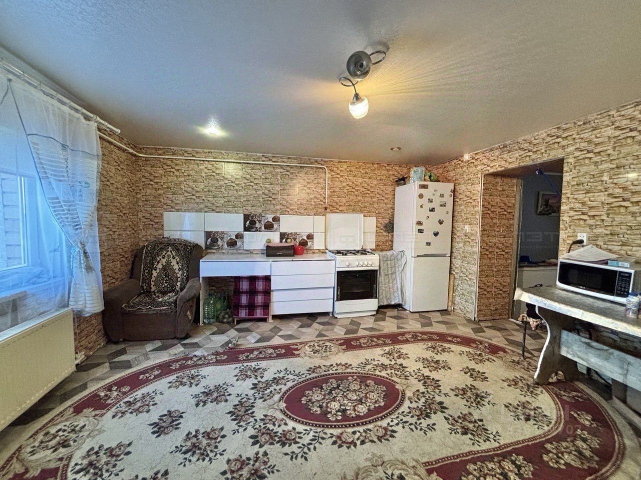 В доме сделан ремонт, можно сразу заехать и жить. Окна пластиковые, потолки натяжные, в спальнях деревянные, на полу линолеум. Просторный санузел с джакузи, полностью в кафеле, установлен бойлер на 80 литров. На кухне установлен газовый котел Bugatti. Есть подпол, вход с кухни.