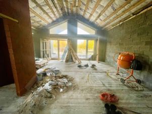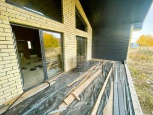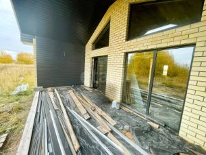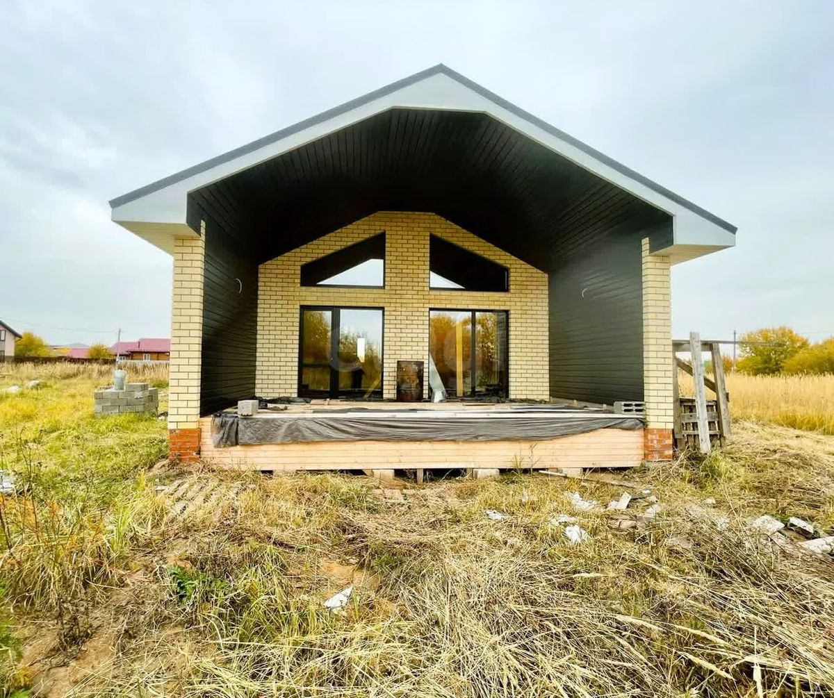 Просторный дом 91,7 м2 в стиле барнхаус с черновой отделкой расположен в поселке Именьково на берегу реки Кама.