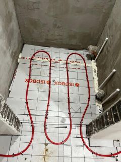 Утепленные полы с пенополистиролом 50 мм+кладочная сетка+теплые полы+полусухая стяжка.