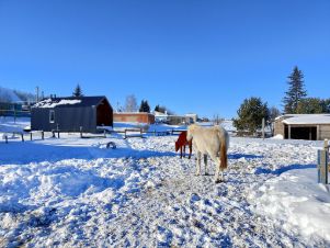 Для выпаса лошадей есть арендованная с/х земля площадью 1 гектар, обнесен электропастухом.