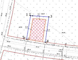 От передней границы участка до проезда есть отступ в 5 метров, что даёт возможность возвести дом по границе участка.