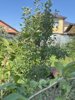 - Плодовый сад: вишня, черешня, яблоня, груша, слива, смородины, жимолость, слива