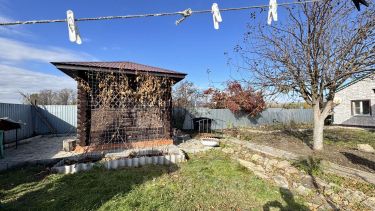 1. Во дворе - прочное бетонное покрытие, ухоженный огород и уютная беседка для отдыха с семьей и друзьями.
