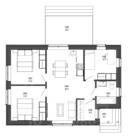 - Большая гоcтинaя-студия 24 м² с выходом на терассу площадью в 12.7 кв.м.
