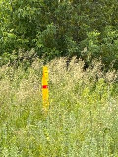 коммуникации на границе участка, в переди красивое поле.
