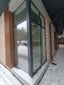 Комбинированный фасад с использованием кирпича ручной формовки, сибирской лиственницы и керамики, мягкая кровля, высота потолков 3,5м, 4 спальные комнаты, 3 санузла, котельная, прачечная, 2 гардеробные, кухня-гостиная с кладовой.