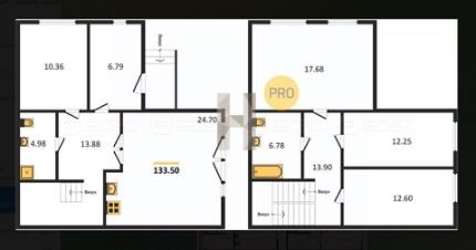На первом этаже находятся: большая прихожая зона, просторный холл, сан. узел, кладовая комната,
