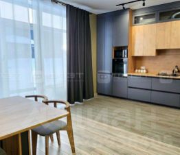 кухня - гостиная, панорамные окна, высота потолков 3 метра.