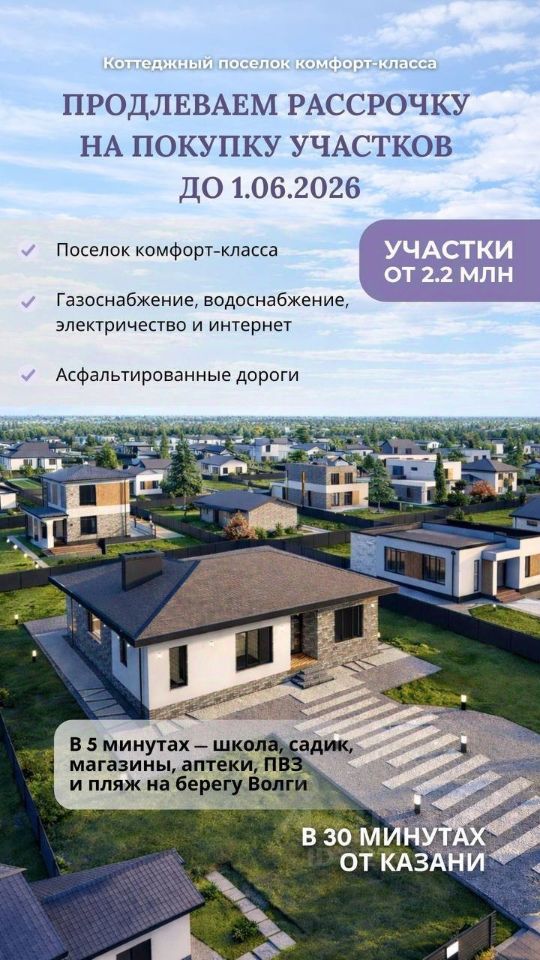 Современный коттеджный поселок комфорт класса с отменными видовыми кадрами на Казань и Волгу, всего в 30 минутах езды от Казани