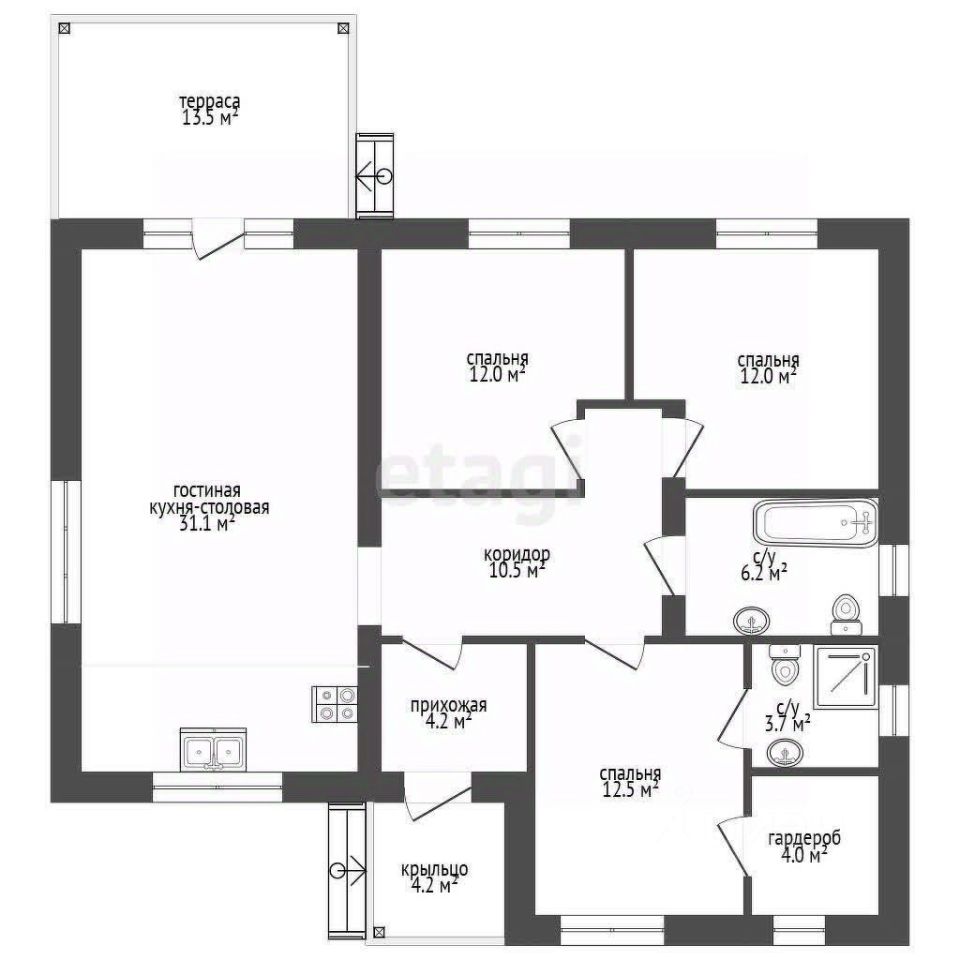 - Две дополнительные спальни (для детей или гостей).