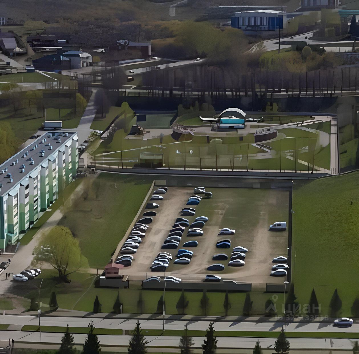 Участок (2 смежных) под коммерческую застройку в черте города Лениногорска, напротив Юбилейного парка. Автостоянка функционирует (входит в стоимость), занимает не всю площадь, сам участок больше.