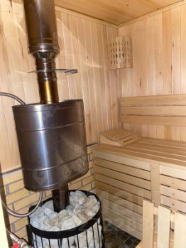 Отделка - материалы премиум, кровля металлочерепица, фундамент в строении - бетонная плита. Также новая баня с открытой печью-каменкой и оборудованный сарай со стеллажами и бетонным полом.