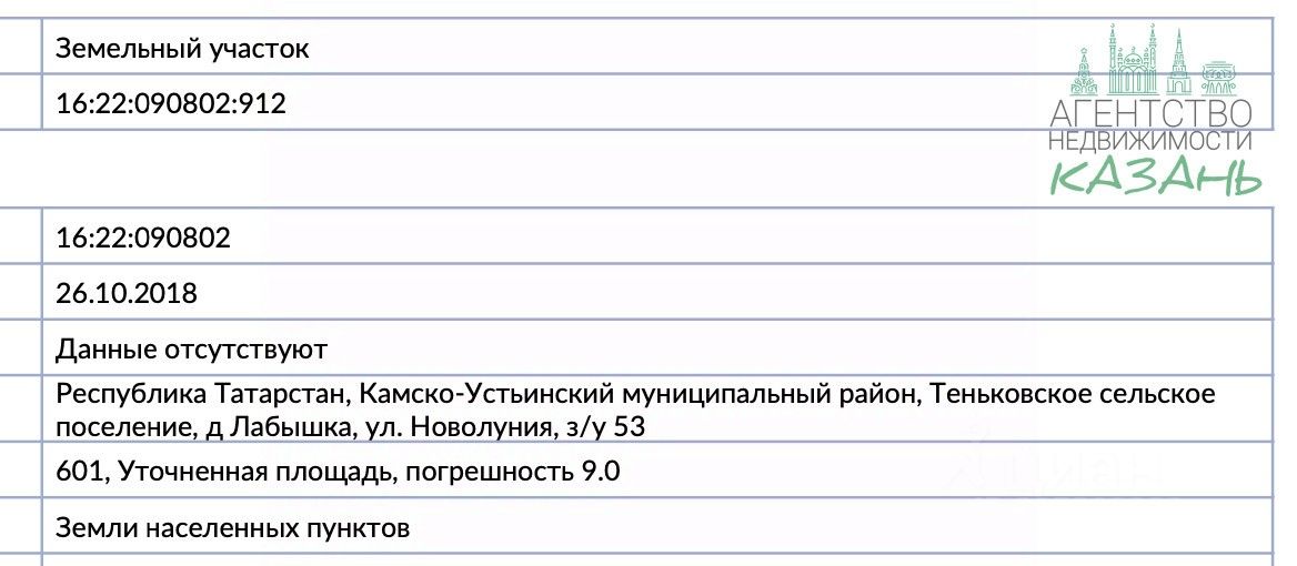 Адрес: Республика Татарстан, Камско-Устьинский район, д. Лабышка, ул. Новолуния, з/у 53