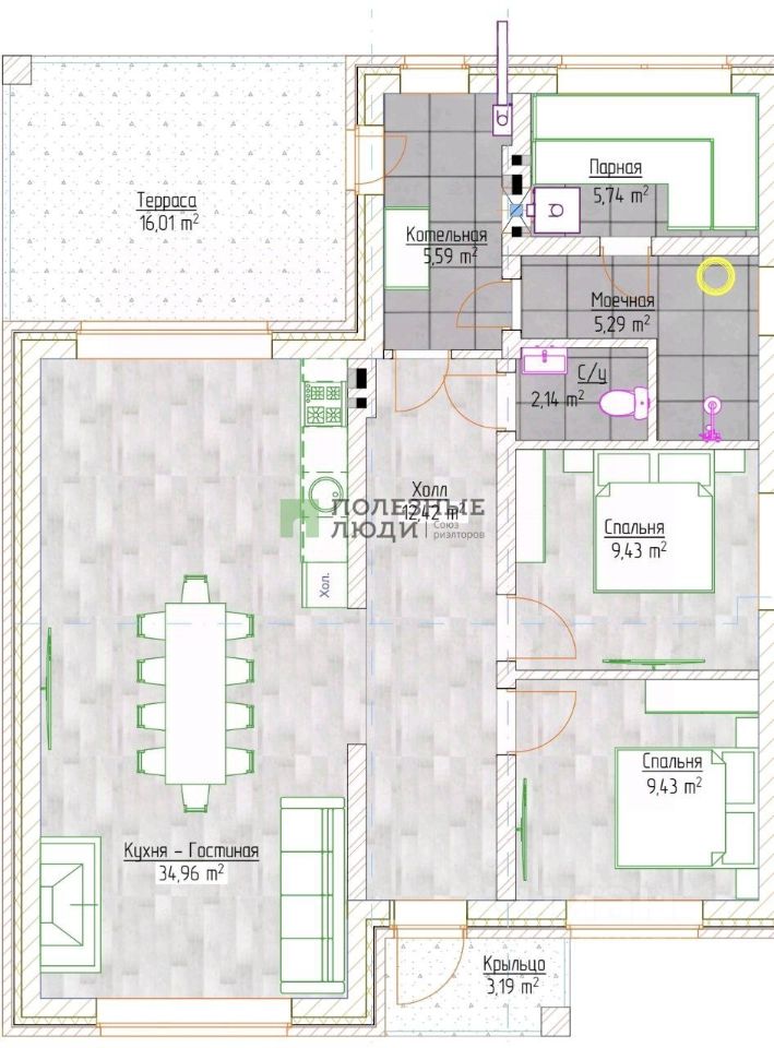 Кухня - гостиная 34.96 кв.м