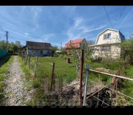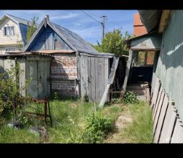 Участок 5.87 сот. На участке два домика, один жилой (жёлтый). Есть старая баня. Туалет на веранде. Участок угловой, квадратный, идеально подходит для строительства новой дачи. Есть небольшой перепад по высоте, т.к. изначально было два участка по 2.9 сот.