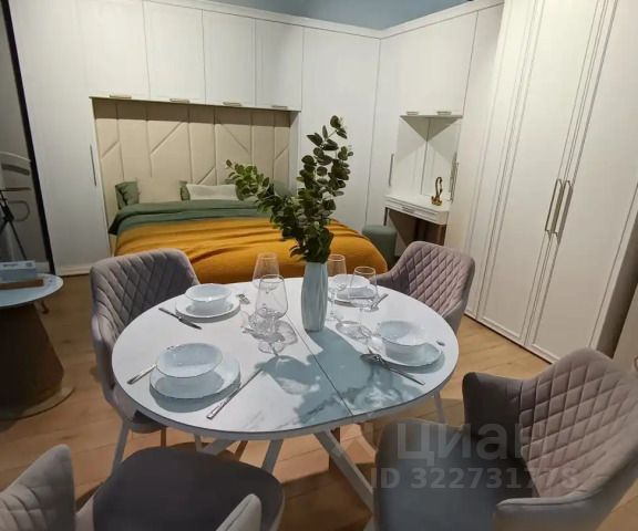 Студия, лоджия (обеденная зона) 8 кв м и спальня 25кв. М, в квартире всё необходимое есть, до метро 1км - 15 минут ходьбы, рядом все магазины гипермаркеты в шаговой доступности, центр гимнастики фитнес центр, бассейн. На такси до центра 10минут езды - 150 руб, на метро 3 остановки. Во дворе можно припарковать машину, территория огорожена, во дворе видеокамеры
