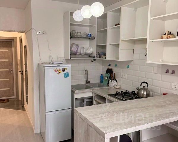 В квартире есть вся необходимая мебель на кухне и в комнате, а также техника — холодильник и стиральная машина. Планировка предусматривает совмещённый санузел с ванной, что удобно для проживания.