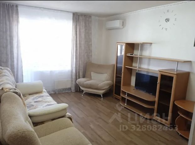 В квартире есть вся необходимая мебель на кухне и в комнате, а также техника — холодильник и стиральная машина. Планировка предусматривает совмещённый санузел с ванной, что удобно для проживания.