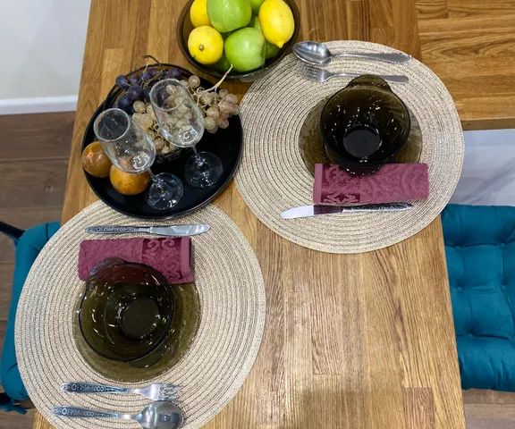 •Кухня оборудована встраиваемой техникой, посудой для приготовления пищи и ее приема.