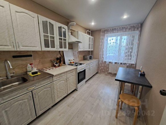 Кухня оборудована холодильником, микроволновой печью, варочной поверхностью, посудой для приготовления пищи и сервировки.