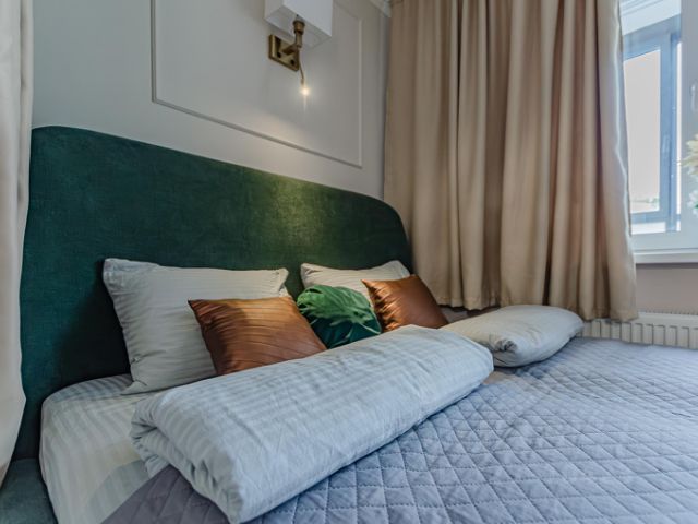 -Удобную двуспальную кровать с ортопедическим матрасом и раскладной диван для двух дополнительных мест.