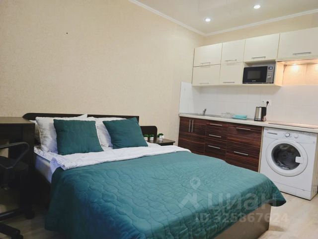 Свежая студия после ремонта, месторасположение идеальное, вокруг несколько линий транспортной развязки, так что можно попасть в любую точку города. До центра на общественном транспорте около 20 минут, на машине 8-12 минут.