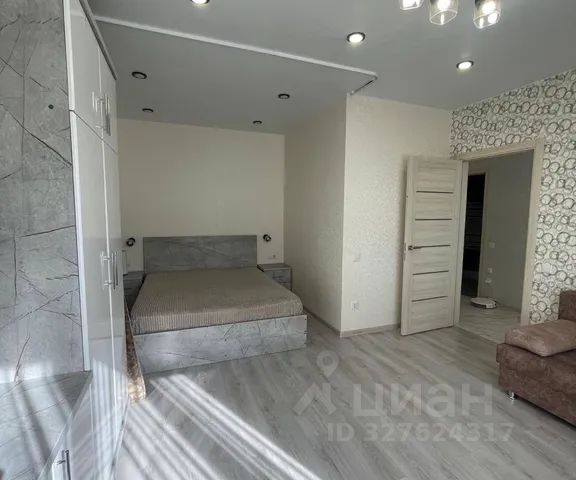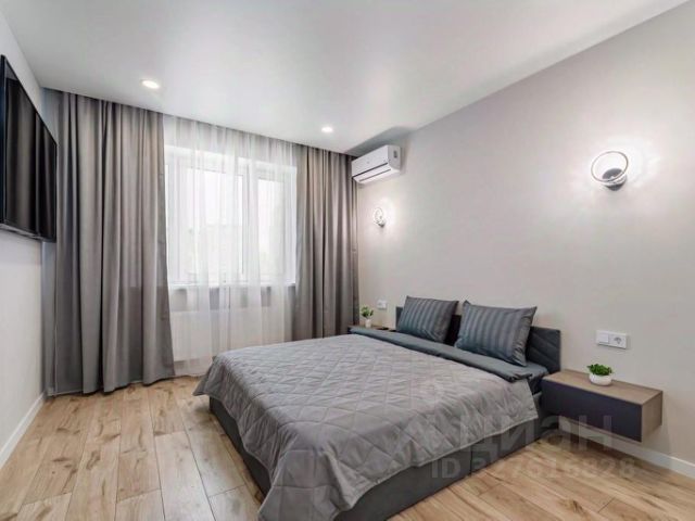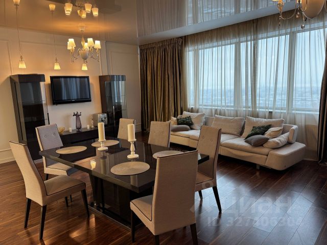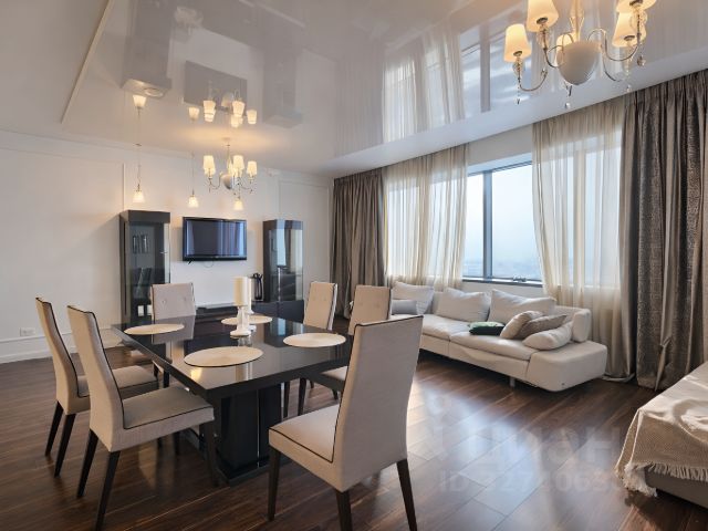 Уютная, комфортная, оформленная в дизайнерском стиле просторная квартира. С красивым видом на город, на реку вдали..