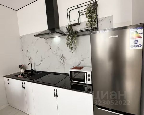 Стильный кухонный гарнитур, оснащён варочной панелью, вытяжкой, духовым шкафом, микроволновой печью, чайником и новым двухкамерным холодильником, а также имеется весьма вместительная гардеробная комната;