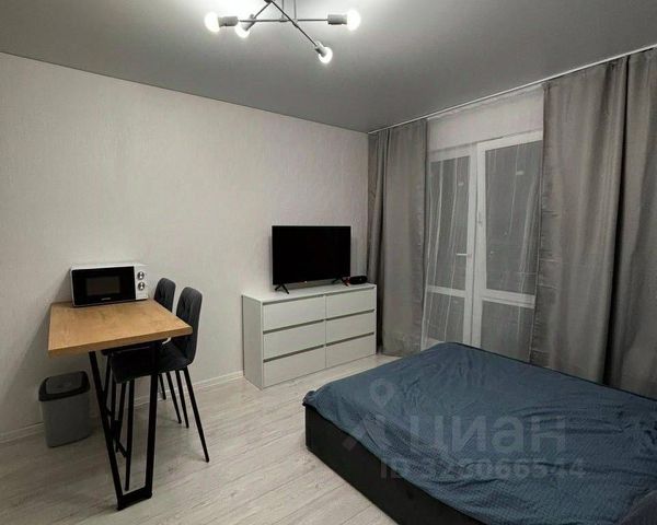 Видовая квартира-студия на 18 этаже с видом на лес (закат). Сделан качественный ремонт, есть вся необходимая техника и мебель для двоих, детская площадка во дворе и просторная автомобильная парковка. В соседнем доме продуктовый магазин, автобусная остановка в 5-7 минутах ходьбы.