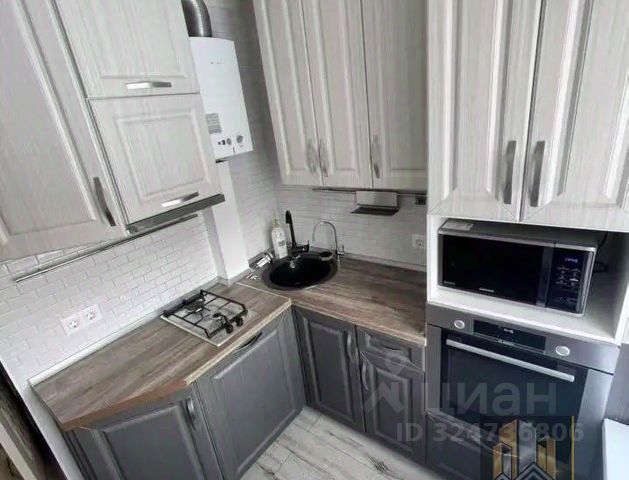 Кухня: шикарный кухонный гарнитур с доводчиками от Ikea, раскладной диван (ширина в разложенном состоянии 140 см), барный стол, стулья, тумба. Также есть вся необходимая посуда (столовые приборы, кружки, тарелки, салатницы, сахарница, сковородка, кастрюля).
