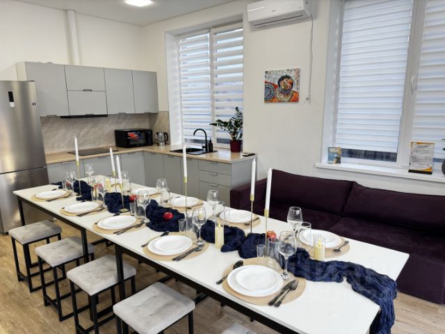 Чистый коттедж в посёлке Малые Клыки Советского района Казани (ехать по Южной трассе, на светофоре через дорогу от "Мегастроя" и "Агавы" съехать вниз по Дорожному переулку 500 метров до моста, на мост не поднимаясь, дом с правой стороны, дорога асфальтирована). Все фото соответствуют действительности. Стены из кирпича покрыты декоративной штукатуркой короед. Вся бытовая техника и камин полностью рабочие. У центрального входа на 1-м этаже большой двухъярусный зал с восьмьюдесятью сидячими местами, обычным столом, столом-трансформером, тремя столами-книжками, барной стойкой, холодильником и кондиционером, безлимитный бесплатный Wi-Fi (пароль не нужен), 4K и Full HD телевизор (Android, подключены к Wi-Fi, YouTube работает на полной скорости, есть голосовой помощник "Салют"), Blu-ray/DVD/CD плеер с USB-разъёмом, караоке, микрофоном и мощными колонками SVEN MC-30 с AUX-входом и Bluetooth, кухня с плитой, микроволновкой, посудой, в том числе казаном на 5 литров, и столовыми приборами, комната с диваном и холодильником и санузел (унитаз, биде и раковина), у 2-го входа комната с двумя диванами-скамьями, столом и холодильником, на цокольном этаже душ, электрическая сауна с досками из липы, греется за 500 рублей в час (можно париться вениками), чистый большой бассейн с фильтром и противотоком длиной 6, шириной 4 и глубиной 1.5 метра, греется за 3000 рублей 2 суток до 30 градусов, спальня и санузел (унитаз и раковина), на 2-м этаже 3 спальни и санузел (унитаз, биде, раковина, душ и ванна), на 3-м этаже комната с американским бильярдом, бильярдный стол Kaldera Victory Classic на 12 футов, и кондиционером, 26 спальных мест с постельным бельем, горячая и холодная вода, мыло, полотенца, тапочки, утюг, гладильная доска и фен. Любую комнату можно закрыть. Возможна организация кейтеринга. На участке беседка с крышей и без крыши, большая мангальная зона и парковка на 12 машин, за участком парковка на 20 машин. Можно пользоваться всеми комнатами и фейерверками. Камер и насекомых нет. Рядом река Нокса. Очень удобное расположение - 10 минут езды до "Ривьеры", 15 минут езды до Кремля и Баумана в центре, 5 минут ходьбы до здания (соседнее от ЖК Green) с "Пятёрочкой", аптекой "Здравсити", алкомаркетом "Порт Маркет" и "Русалка" и пекарней, кондитерской и кофейней Testo, также в 5 минутах ходьбы на другой стороне остановка "Университет правосудия", 10 минут ходьбы до "Вкусно - и точка". Время пребывания на ваше усмотрение, стандартное время приезд в 14:00, выезд в 12:00. Цена на понедельник - четверг 25000 рублей до 20 человек и 700 рублей за каждого дополнительного, на пятницу - воскресенье 30000 рублей с такой же доплатой, бронь треть суммы на карту "ВТБ", "Сбербанка" (привязаны к номеру сотового) или наличными. Залог 3000 рублей. Можно показать дом по видеосвязи, вживую, паспорт и заключить договор.