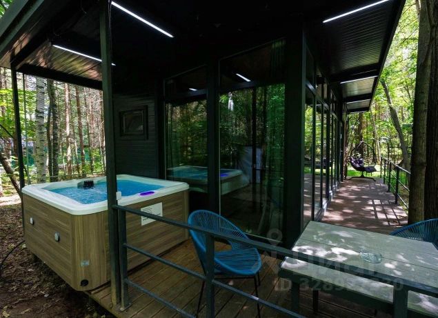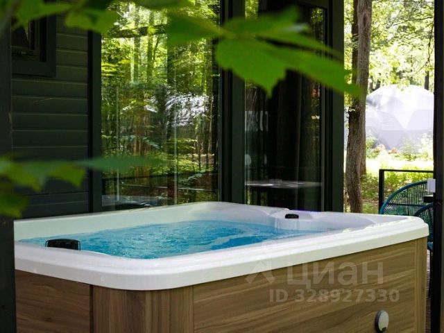 Сам дом в 3 этажа и 450 кв.м. из бруса. Внутри дома банкетный зал на 40 человек, полноценная кухня, 8 спальных комнат, 3 с/у. Со второго этажа есть переход в зону бассейна. Бассейн большой, размерность 3*10 метра и глубина 1.8 метра. Так же в зону бассейна можно пройти через улицу.