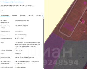 Земельный участок с кадастровым номером 16:24:110102:732, вид разрешенного использования - для индивидуального жилищного строительства из земель населенных пунктов, общей площадью 1067 кв.м., расположенный по адресу: Республика...