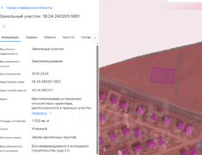 Данные получены с сайта ГИС Торги. Земельный участок с кадастровым номером 16:24:240201:1852, вид разрешенного использования для индивидуального жилищного строительства (код 2.1) из земель населенных пунктов, общей площадью 1000 кв.м., расположенный по адресу: Р...