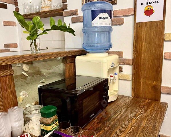 На втором этаже расположена большая кухня с большим угловым диваном, камином столами, есть все необходимое:холодильник, кулер, микроволновая печь, посуда. Можно приготовить себе чай или кофе и посидеть на диване возле камина.Есть возможность заказать еду в номер по карте доставки с ближайших кафе и ресторанов.