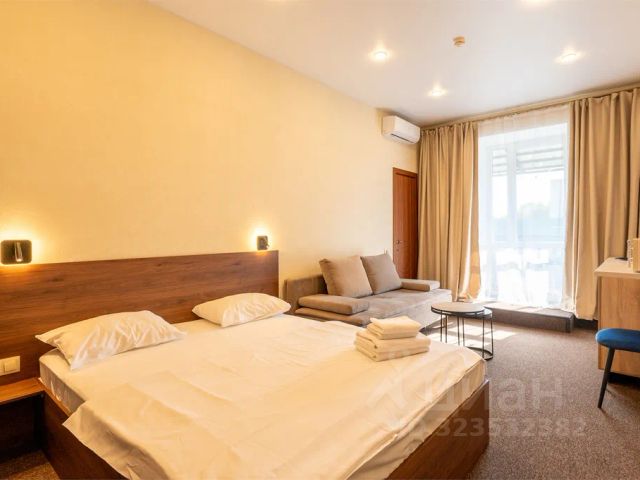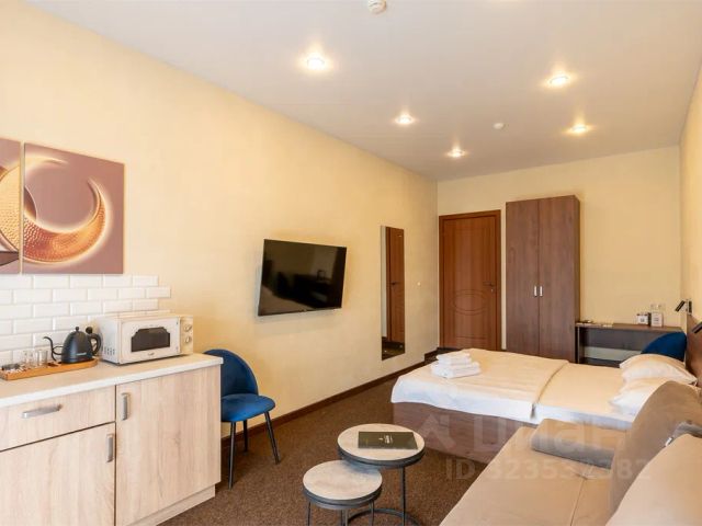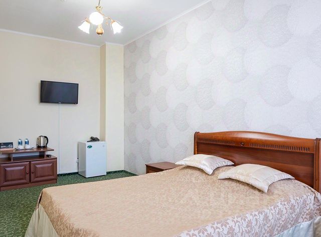 Кровать - 1шт. (160*200), шкаф, стол, стул, тумбочка, холодильник, чайник, чашки, телевизор, сауна, кондиционер, вешалка, фен, санузел: предметы индивидуального пользования (полотенце по 3шт, туалетная бумага, мыло, гель/шампунь)