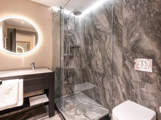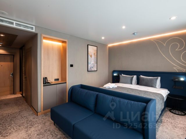 Уютные и эргономичные номера, состоящие из двух комнат (гостиная с кухней и спальня) и отдельной гардеробной, прекрасно подойдут для долгосрочного проживания до 4 человек. Кухонная зона с современной бытовой техникой и полным набором посуды станет отличным решением для тех, кому важно чувствовать себя как дома.