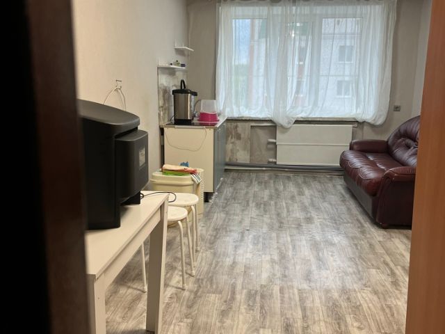 Комната 18м² в общежитии Тургенева 60, 5/5. Диван, телевизор, стол, кухонная зона, варочная панель, раковина. Вода в комнату заведена. Холодильника, стиральной машины нет. Ванна, санузел общие на этаже. Оплата 10тыс все включено