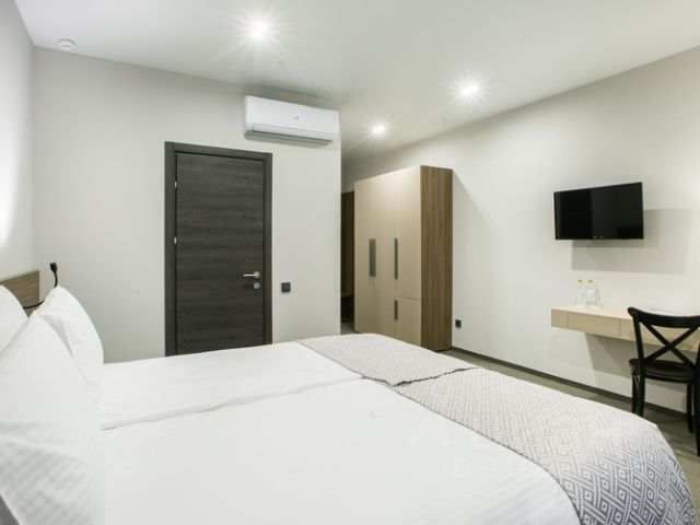 Стандартный однокомнатный номер 24 кв.м. В номере: Двуспальная кровать Прикроватные тумбочки Письменный стол Шкаф-купе Зеркало в прихожей ЖК-телевизор Холодильник Телефон Фен Тапочки Совмещенный сан.узел с ванной Набор ванных принадлежностей Стоимость номера включает: Бесплатный высокоскоростной Wi-Fi доступ в Интернет Бесплатная камера хранения Бутилированная вода в день заезда
