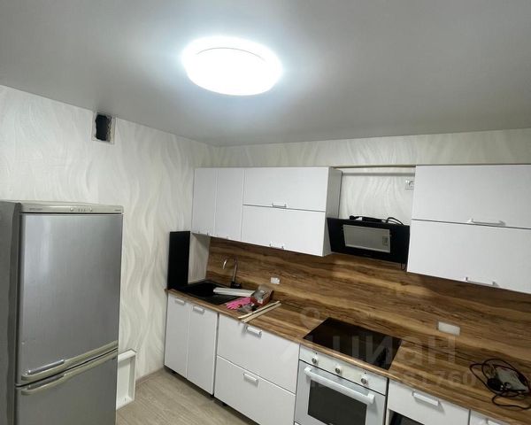 В квартире есть вся необходимая мебель на кухне и в комнате, а также техника — холодильник и стиральная машина. Планировка предусматривает совмещённый санузел с ванной, что удобно для проживания.
