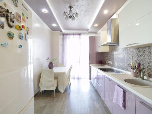 ПРО КВАРТИРУ: Стильный кухонный гарнитур, оснащён варочной панелью, вытяжкой, духовым шкафом, микроволновой печью, чайником холодильником, посудомоечная машина ,а также имеется весьма вместительная гардеробная комната;