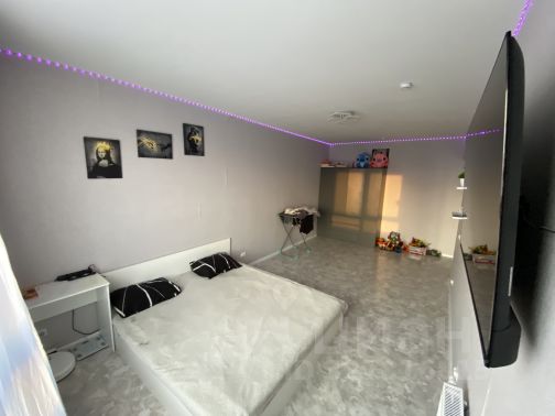 Комната: большая двуспальная кровать с матрасом, большой шкаф-купе, компьютерный стол, стул, комод IKEA, этажерка, телевизор Supra.