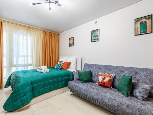 Сдается в новом доме у парка имени Урицкого - самого популярного парка города, однокомнатная квартира с дизайнерским ремонтом. Рядом есо.clinik, 15 мин. ходьбы- метро Яшьлек, 10 мин. на машине до Чаши. В квартире созданы все условия для комфортного отдыха: кондиционер, шторы блэкаут, москитные сетки, бойлер, 4 спальных места: большая кровать размера queen size c ортопедическим матрасом и удобный раскладной диван 160х200, красивая посуда, ТВ, кабельное телевидение и wi-fi. Делаю отчетные документы с QR-кодом. У дома круглосуточная охраняемая парковка для машин. У дома детская площадка, сквер им. Васильченко с качелями и красивым садом. Подъезд чистый, 4 лифта. Квартира 100 % соответствует фотографиям!