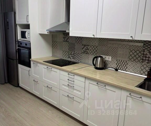 - плита, духовой шкаф, холодильник, микроволновая печь, чайник, набор посуды;