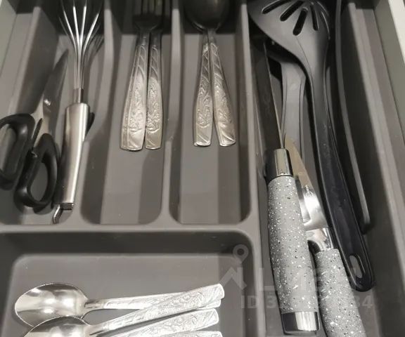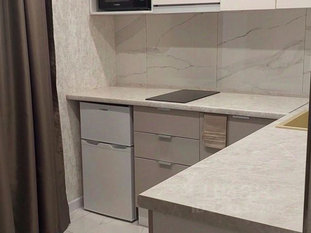 В кухонной зоне: индукционная плита, холодильник, микроволновая печь, электрический чайник, тостер, комплект посуды, бокалы и кухонные принадлежности