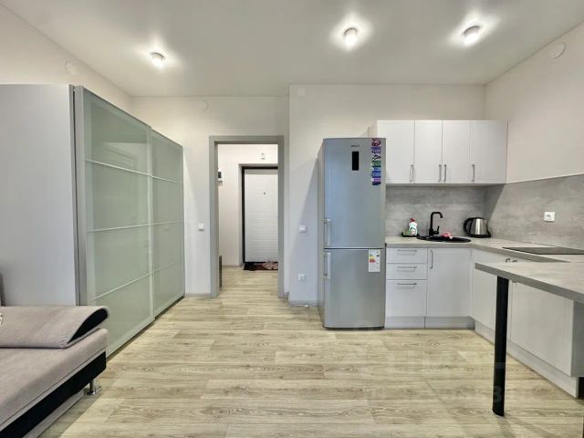 Полностью оборудованную кухню: плита, духовой шкаф, холодильник и всё необходимое для готовки.