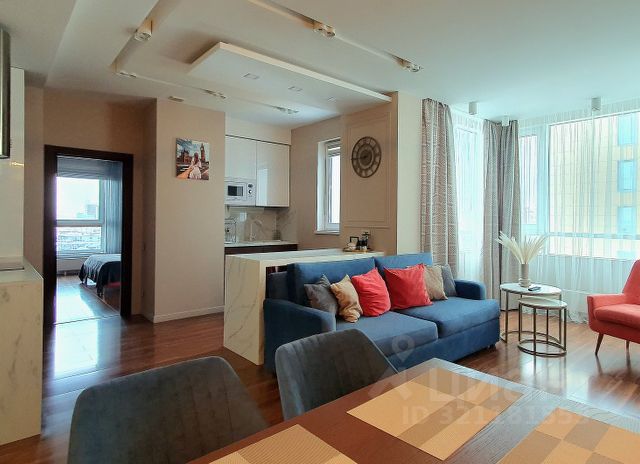 • Спальня и гостиная - двуспальная кровать с ортопедическим матрасом, СМАРТ-ТВ, двуспальный диван, кондиционер, Wi-Fi интернет, набор подушек 70х70 и одеял, утюг, гладильная доска, сушилка для белья, фен и стиральная машина.