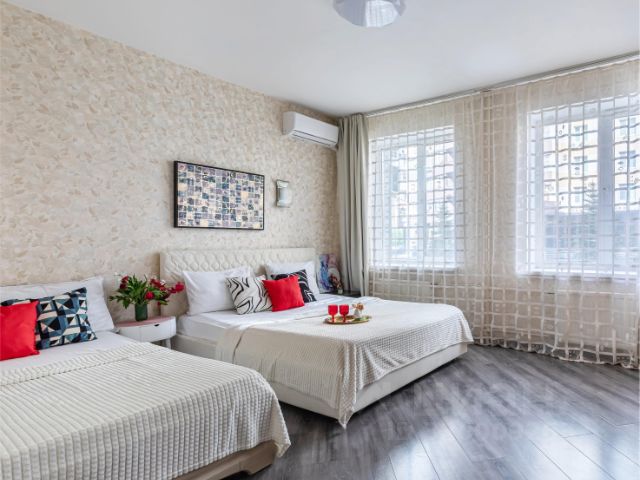 Комфортная, чистая и уютная 1-комнатная квартира рядом с центром Казани. Пожалуйста Внимательно Прочтите Условия Проживания До Бронирования!!! Расчетные часы: Заезд после 14:00, выезд до 12:00. С 23-00 до 7-00 заселение невозможно. Максимальное количество гостей для заселения - 3 человека. При заселении всем гостям обязательно предъявлять паспорта граждан РФ, а детям до 14 лет свидетельства о рождении. Оформляется договор посуточного найма квартиры с лицом, забронировавшим квартиру на ЦИАН и в течении дня выдается чек оплаты. В квартире запрещены вечеринки, нахождение животных, курение, употребление наркотических веществ. Обязательно выполнение режима тишины. Запрещено нахождение в квартире лиц, не указанных в договоре найма квартиры. Квартира предназначена для комфортного проживания гостей прибывших в г. Казань для ознакомления с достопримечательностями столицы Республики Татарстан, служебных командировок, лечения в клиниках города. Любителям "веселого" времяпровождения и лицам младше 20 лет квартира не сдается. При выезде просим гостей не оставлять после себя мусор и грязную посуду. В случае грубых нарушения условий проживания залог возвращаться не будет. Что вы получите при заезде: Всю необходимую бытовую технику (стиральную машину, водонагреватель, электрический чайник, микроволновую печь, варочную поверхность, холодильник, духовой шкаф, посудомоечную машину, фен, телевизор, утюг, кондиционер). Также есть гладильная доска и сушилка для белья. Комфортные кровати-трансформеры с ортопедическими матрасами: двуспальная кровать 160х200 и односпальная кровать 90х200. Свежее постельное бельё, подушки и одеяла. Фильтр аквафор для питьевой воды, чай, сахар, соль, посуда (бокалы, кружки, вилки, ложки чайные и столовые, тарелки плоские, тарелки глубокие, кастрюли и сковородки, лопатки и половник, разделочные доски). Быстрый Wi-Fi. Гигиенические принадлежности (одноразовые тапочки, шампунь, мыло, гель для душа, зубная паста, туалетная бумага, средство для стирки, свежие полотенца). Парковочное место на платной наземной охраняемой стоянке (за отдельную плату) или бесплатная парковка на улице рядом с домом. Закрытый двор без машин с круглосуточной охраной. В шаговой доступности находятся: Торговый центр Kazan Mall, Пятерочка, где можно купить все необходимое; Тренажерный зал и бассейн Fitness house; центральные улицы, Театр Кукол, Филармония и набережная озера Кабан для прогулок в свободное время и досуга; кафе Шоколадница, кофейня Skuratov, Вкусно и точка и множество других кафе если нет времени готовить самостоятельно. Легко добраться: 20 минут на такси от аэропорта, 15 минут на такси от ж/д и автовокзала. Рядом автобусная остановка, станция метро в шаговой доступности. =================